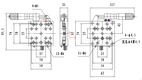 細牙螺桿或測微頭在平移臺側面放置,節省空間